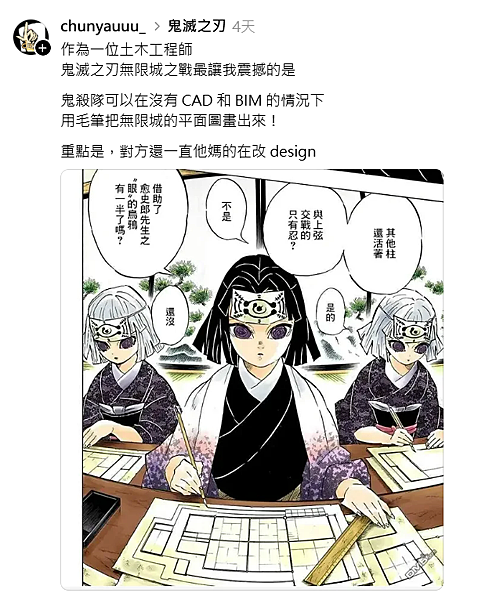 而且還不靠 AutoCAD 和 BIM,徒手用毛筆畫出無限城,超強!!!